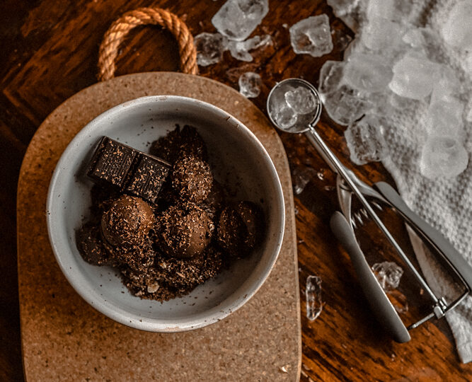 *Do not use an ice cream maker. The ice cube tray method allows quick freezing and prevents the incorporation of air and water. This creates a desirable creamy and smooth texture.